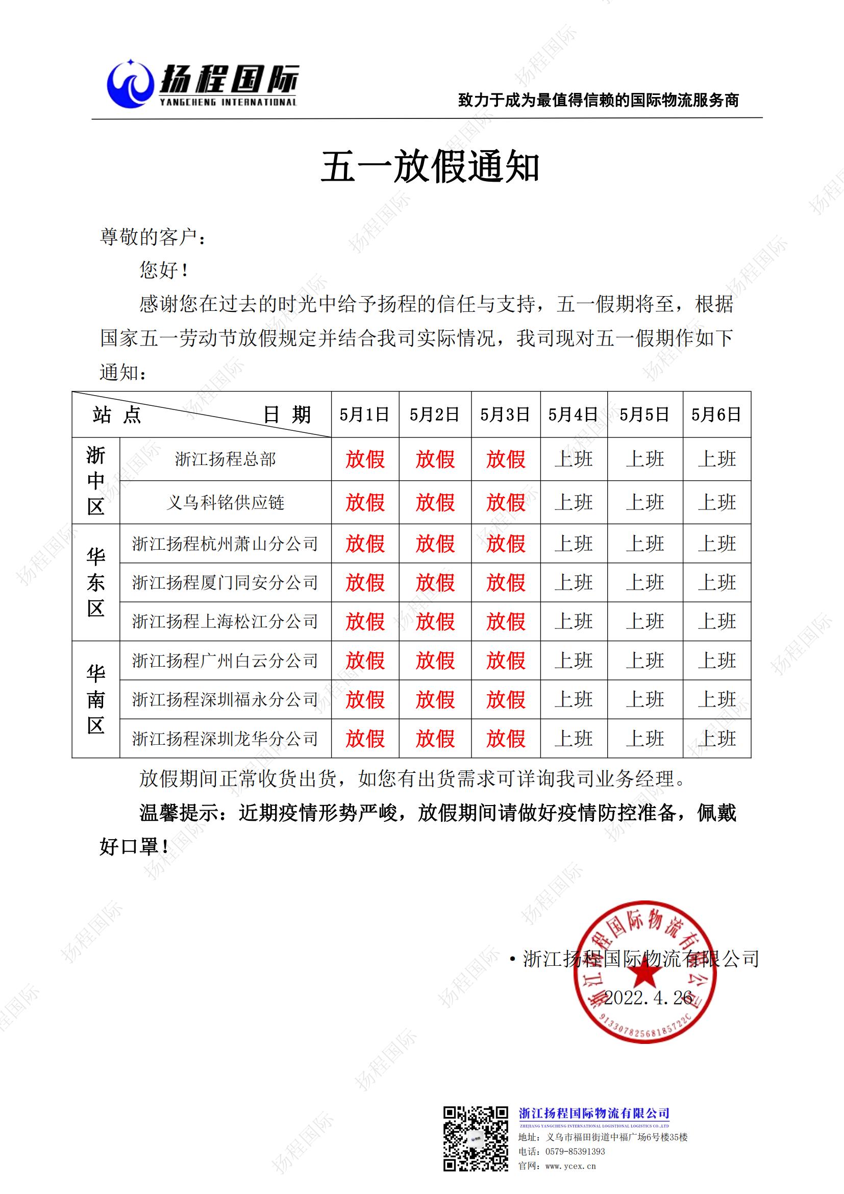 五一放假通知