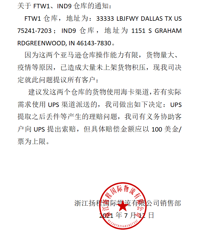 关于FTW1、IND9仓库的通知