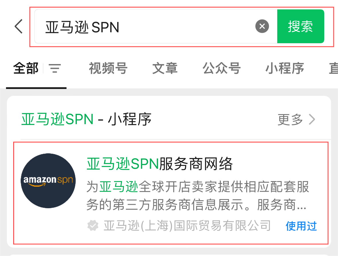 第一步:搜索亚马逊SPN,进入【亚马逊SPN服务商网络】小程序