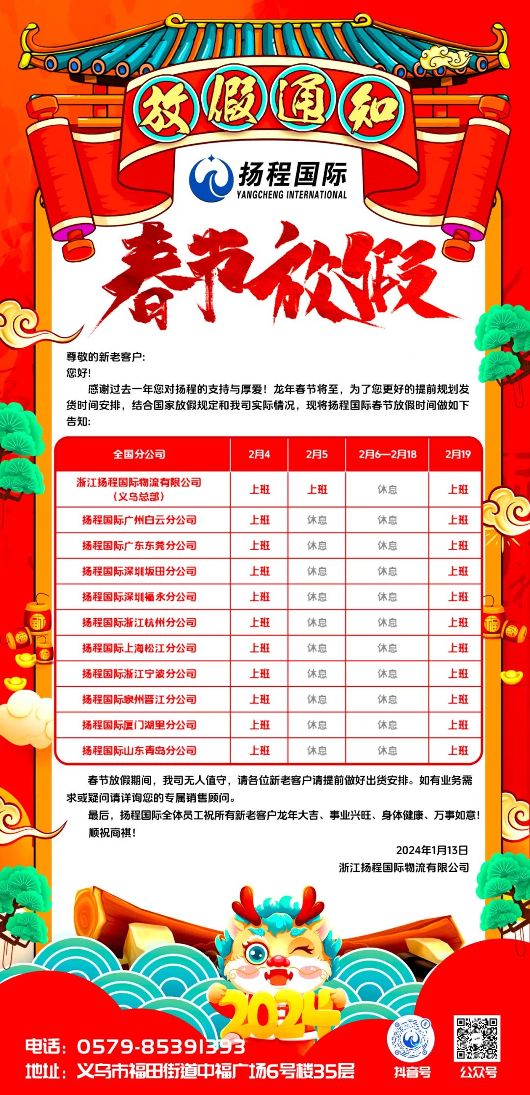 皇冠足球即时比分关于2024年春节放假通知